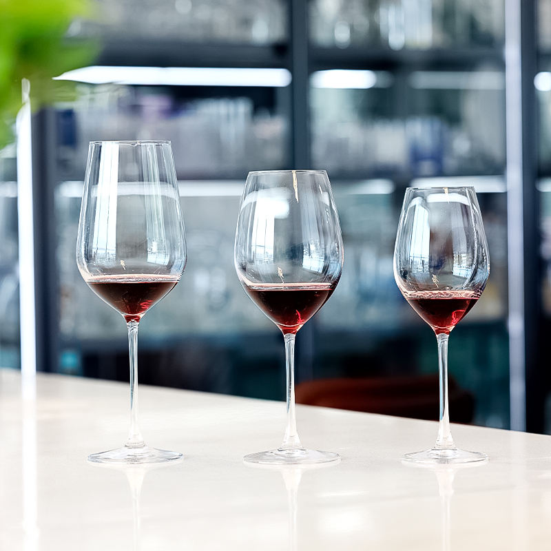 Sleek clear wine glasses (multiple sizes) — elegant, functional, perfect for red wine & any occasion.